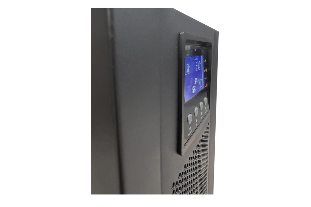 Seguridad y servicio ininterrumpido para equipos instalados en pymes. Configuración Monofásica - Monofásica VFI, posibilidad de ampliación de autonomía e instalación en paralelo.